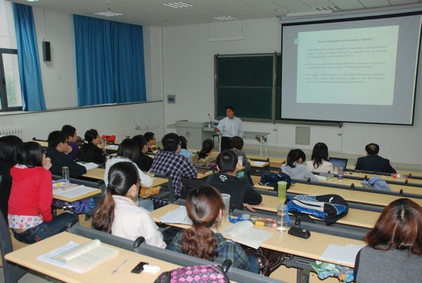 5月10日,王庆海教授作了题为“竞争与公司治理机制”学术报告。王庆海教授首先讲解了为什么要研究竞争和公司治理的关系。他引用了Shleifer和Vishny的文章里关于公司治理的定义,以及Hart文章里对公司治理的阐释,并指出以上文章中对公司治理定义的不合理之处。王庆海教授指出,对公司治理的含义应放在大的经济框架下去理解,得出更合理的解释。他讲到,公司治理一般涉及五点,即恶性收购、大股东、董事会、首席执行官的激励机制、信用发行和股东。接着,王庆海教授讲解了不同的公司治理结构是否影响公司业绩。并得出,通常公司治理和公司价值之间是弱相关的,但公司治理和管理行为有较强的关系。然后,他通过实证分析,讲解了外在和内在公司管理机制的关系。竞争和外在管理机制负相关,和董事会质量正相关。同时得出竞争的作用,即竞争使市场优胜劣汰;竞争使拥有较好管理的公司扮演收购者的角色;竞争使公司加强自身管理,提高效益。最后,王庆海教授对报告结果做了总结:面临强竞争的公司有弱的外在公司治理结构,强的内在治理结构。竞争影响内在和外在公司治理结构的关系。同时结合中国的情况进行了分析。