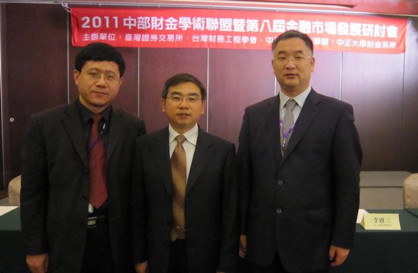 2011年3月12日-17日,山东大学经济学院常务副院长胡金焱教授、副院长李铁岗教授、院党委副书记李维林一行三人应邀出席了在台湾省台中市举行的2011中部财金学术联盟暨第八届金融市场发展研讨会。 第八届金融市场发展研讨会由台湾证劵交易所、台湾财务工程学会、中部财金学术联盟、中正大学财金系所主办,台湾期货交易所、华南银行、宝来证券公司、东海大学财金系所、淡江大学财金系所、朝阳科技大学财金系所、暨南国际大学财金系所协办,台湾大叶大学、中兴大学、亚洲大学、逢甲大学、铭传大学等近16所台湾知名高校财金系所参与承办。会议邀请了山东大学、浙江大学、南京大学、中山大学、吉林大学、四川大学、厦门大学等知名高校参加。本次研讨会旨在研究两岸金融市场发展动态,促进两岸学术与实务交流。